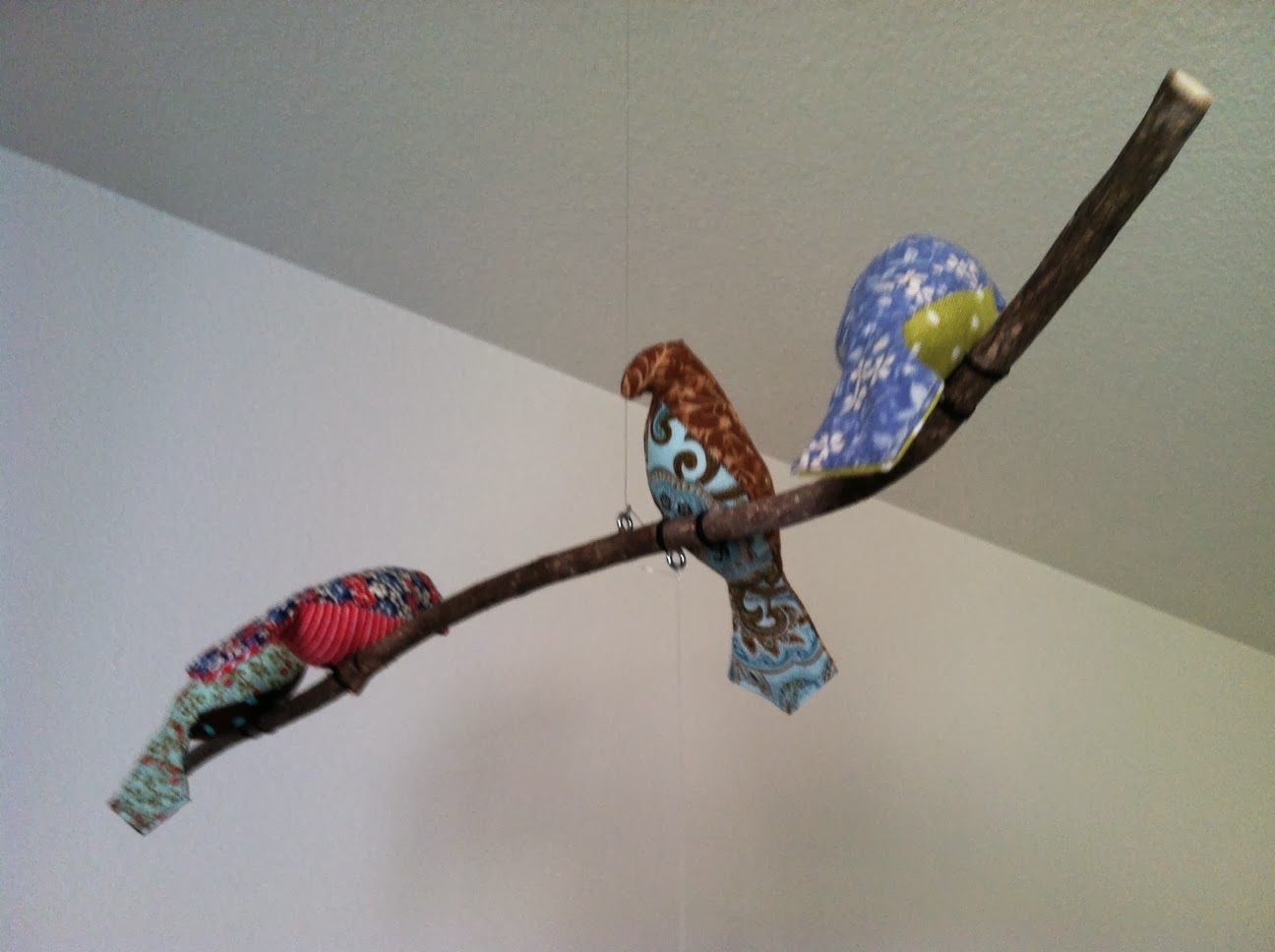 I created a quilt for the baby and I am sharing it here because many of the elements in this baby quilt will be a part of my 50th year project as well...When I am designing a quilt I always start with a "Big Idea." Over Thanksgiving Amanda shared with me her vision for the nursery. She wanted an untraditional nursery with a "woodland creatures." theme. She found a hand crafted mobile on ETSY which I wanted to somehow tie into the quilt. That was my starting point. I also wanted to create a universal theme of the circle of life-so I knew I had to include the 4 seasons and I depicted those with the changing branches of a tree. I machine appliqued a mix of my hand dyed fabrics and commercially created fabric and this is what transpired....